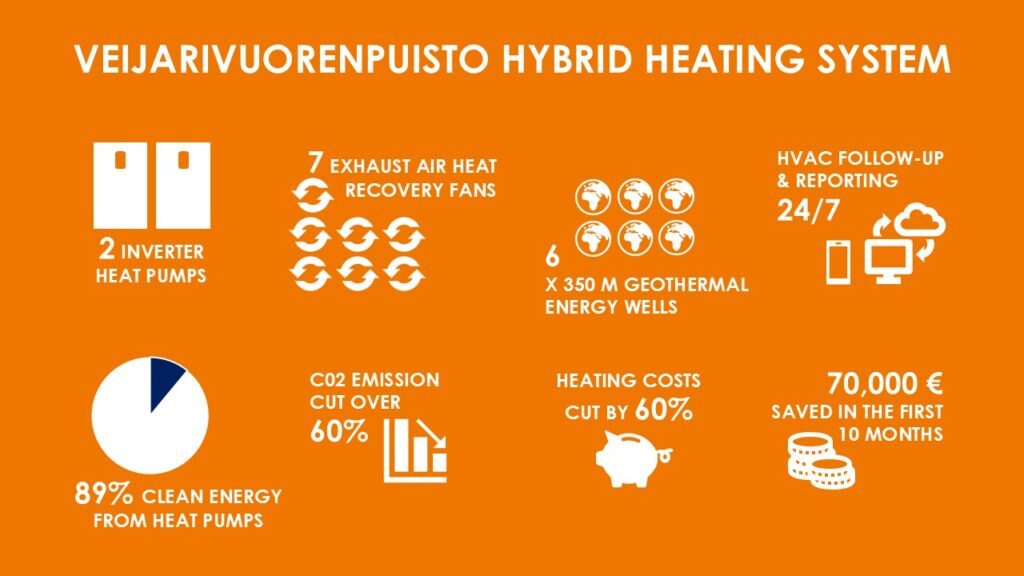The winning hybrid heating system for the EHPA DecarBuilding Award is located in the Finnish capital city, Helsinki, where the temperatures can be -30C during the winter and +30C during the summer. “Until 2024, district heating has been the biggest source for CO2 emissions in the Finnish Capital City Area. Utilizing the Smart Heating waste heat recovery system, the district heating need is cut by more than 50%. When geothermal heat is used instead of district heating, the whole energy consumption can be CO2-free, as electricity used in Finland is often from renewable energy sources” says the CEO Pertti Nissilä.