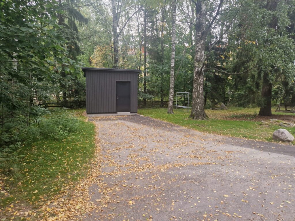 Valokuvissa As Oy Puistokaari 2:een rakennettu ulkoinen lämmönjakohuone, jossa lämpöpumput sijaitsevat.